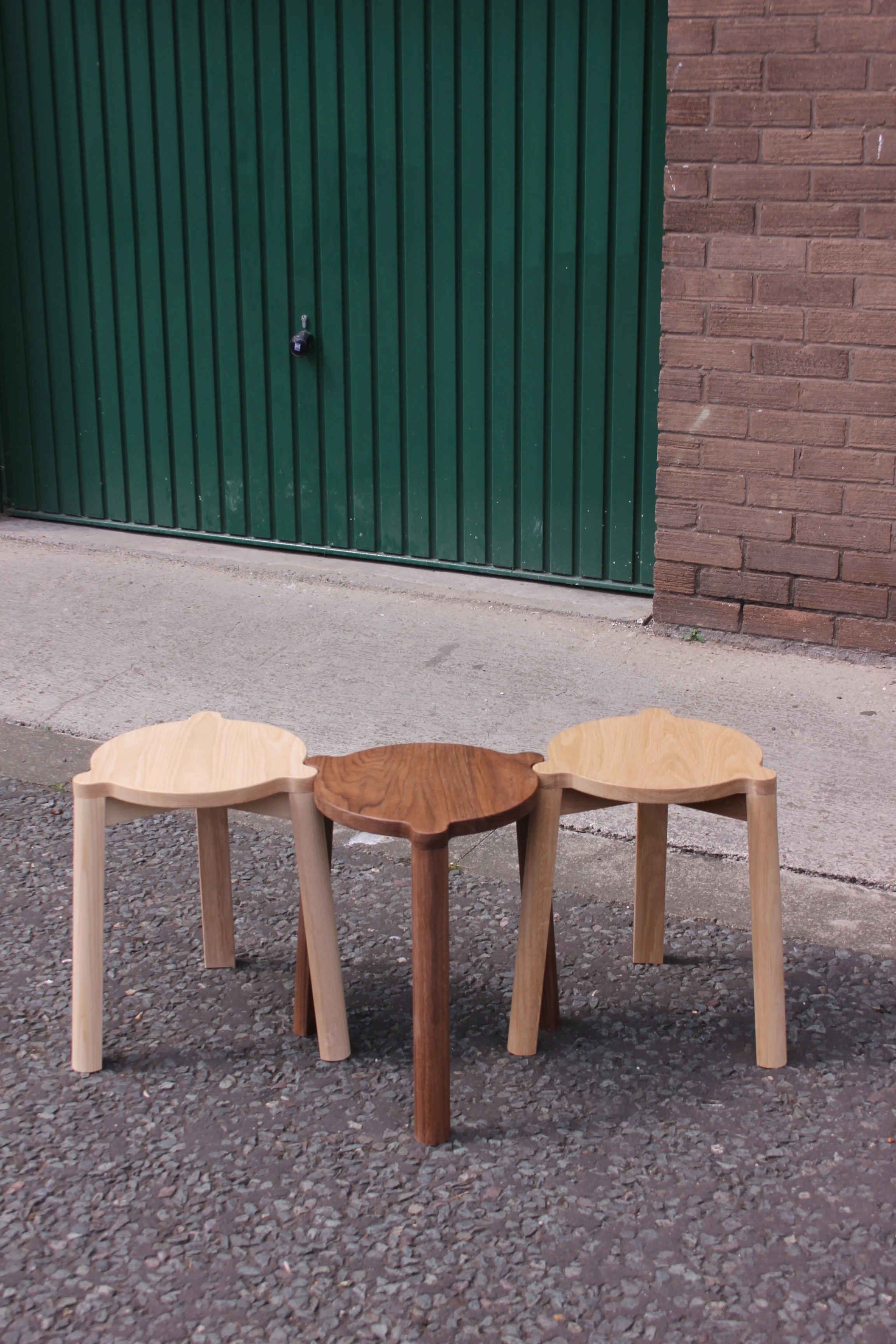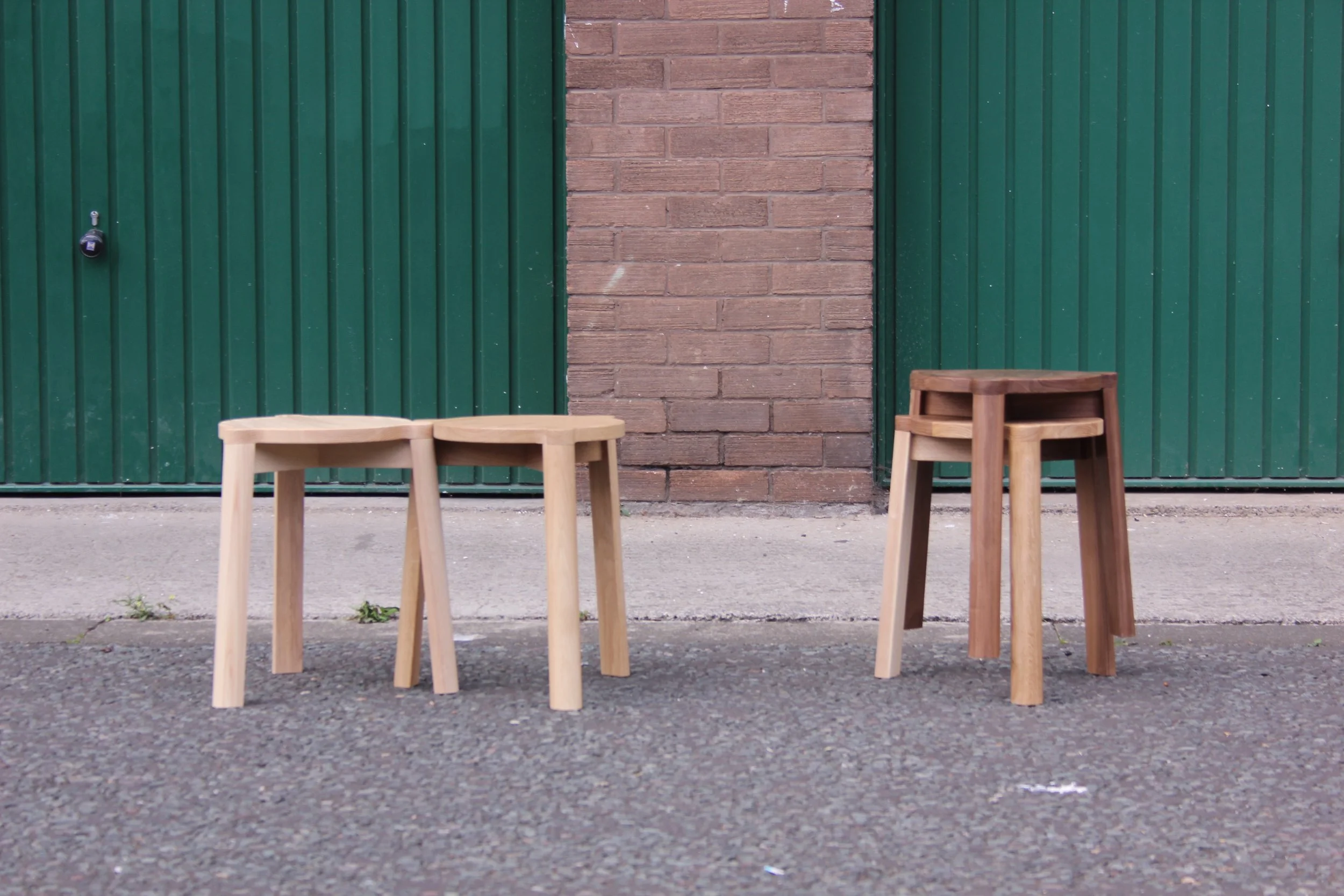 This project explores the opportunity to work with Big River bakery, a community driven social enterprise in Newcastle. The aim was to consider how a collection of seating could reflect the bakery and well suit its existing interior. The result was a series of stackable stools inspired by Big River Bakery. The steel stool takes inspiration from the stottie, a flat round staple of North-East bread making. The wooden stools can be drawn together with their legs neatly neighboured, a reference to the connection of community baking.